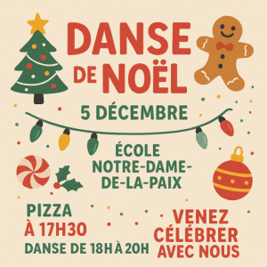 Nous sommes ravis d’organiser une nouvelle activité communautaire et vous invitons chaleureusement à notre traditionnelle Danse de Noël !